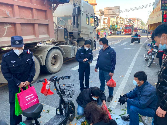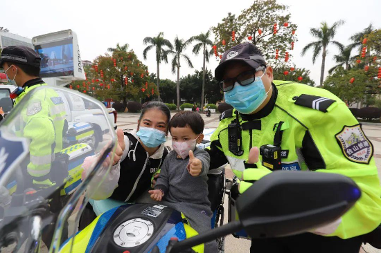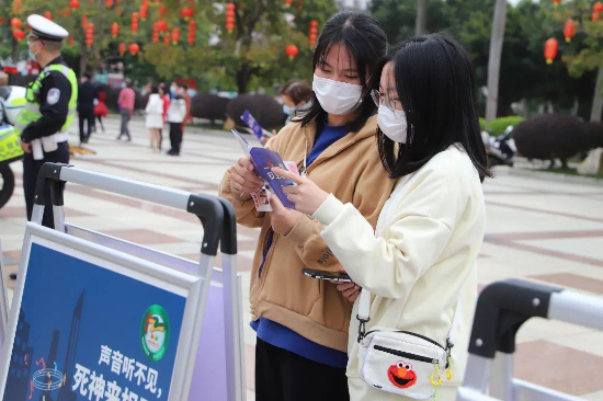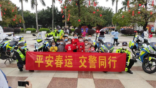 民警現場向市民群眾宣傳“平安春運 交警同行”相關安全知識,倡導群眾錯峰出行、安全出行,同時要向身邊親朋好友普及交通安全知識,共同營造我市安全文明的春運交通環境。