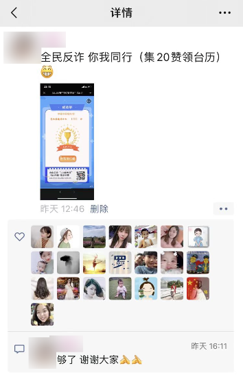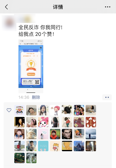 群眾積極參與,紛紛轉發朋友圈點贊活動,進行網上互動。