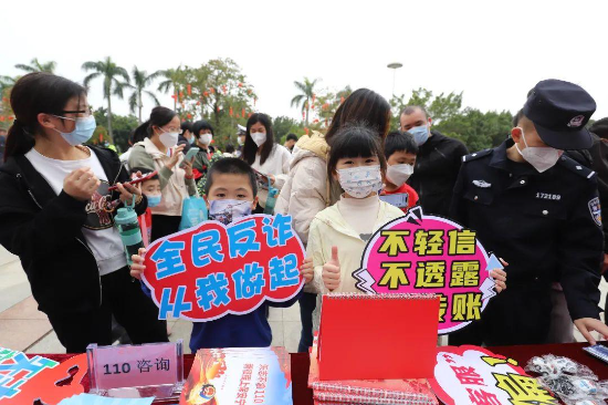 反詐民警向群眾宣講反詐知識,普及《反電信網絡詐騙法》和提供公安業務咨詢,提醒廣大群眾增強自我安全防范意識,預防各類違法犯罪行為,保障自身和家人的生命財產安全。