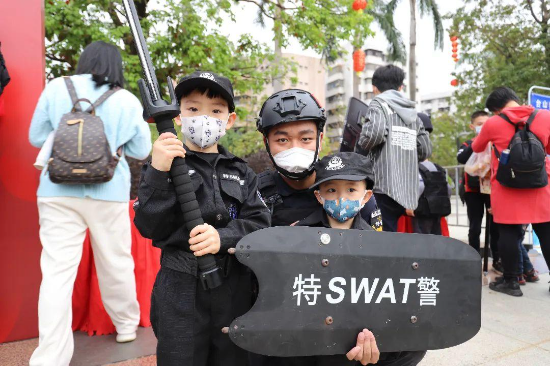 高精裝備零距離接觸,全警種面對面交流。1月7日下午,臺山市公安局在全國第三個“中國人民警察節”來臨之際,在全市范圍內開展以“矢志不渝110 新征程上保安寧”為主題的警營開放日系列活動,主會場設在石化山廣場,民警現場與市民親密互動,進行110報警知識宣傳,教育引導群眾正確使用110、珍惜110、支持110,并為大家奉上“全民反詐”“平安春運 交警同行”“全民禁毒”等各種安全防范錦囊,受到廣大市民群眾的熱烈歡迎。