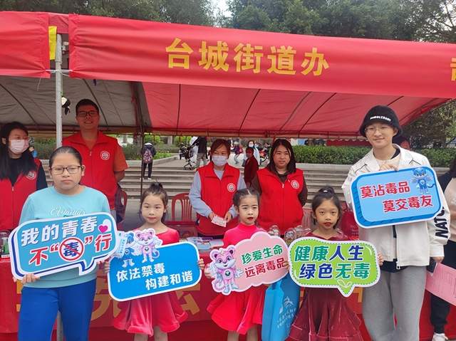 為弘揚法治精神,傳播禁毒理念。臺山市禁毒辦積極響應(yīng),聯(lián)合臺城街道禁毒辦在活動現(xiàn)場開展了內(nèi)容豐富、形式多樣的禁毒宣傳活動。首先,工作人員通過通過設(shè)立禁毒攤位、擺放仿真毒品模型、發(fā)放禁毒宣傳資料、懸掛禁毒橫幅等方式向現(xiàn)場群眾講解毒品的種類、危害和防御毒品誘惑以及“上頭電子煙”的特征以及危害。接著,禁毒志愿者結(jié)合禁毒法律法規(guī)內(nèi)容在現(xiàn)場開展有獎知識的問答,現(xiàn)場群眾踴躍參與回答問題,氣氛熱烈。
