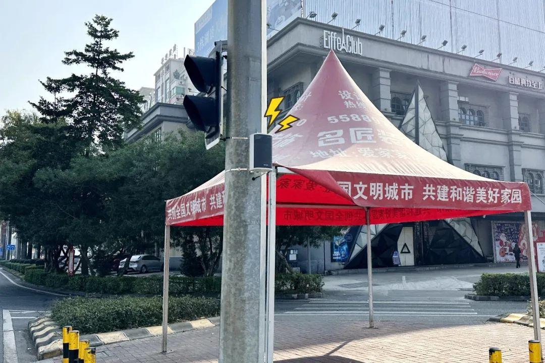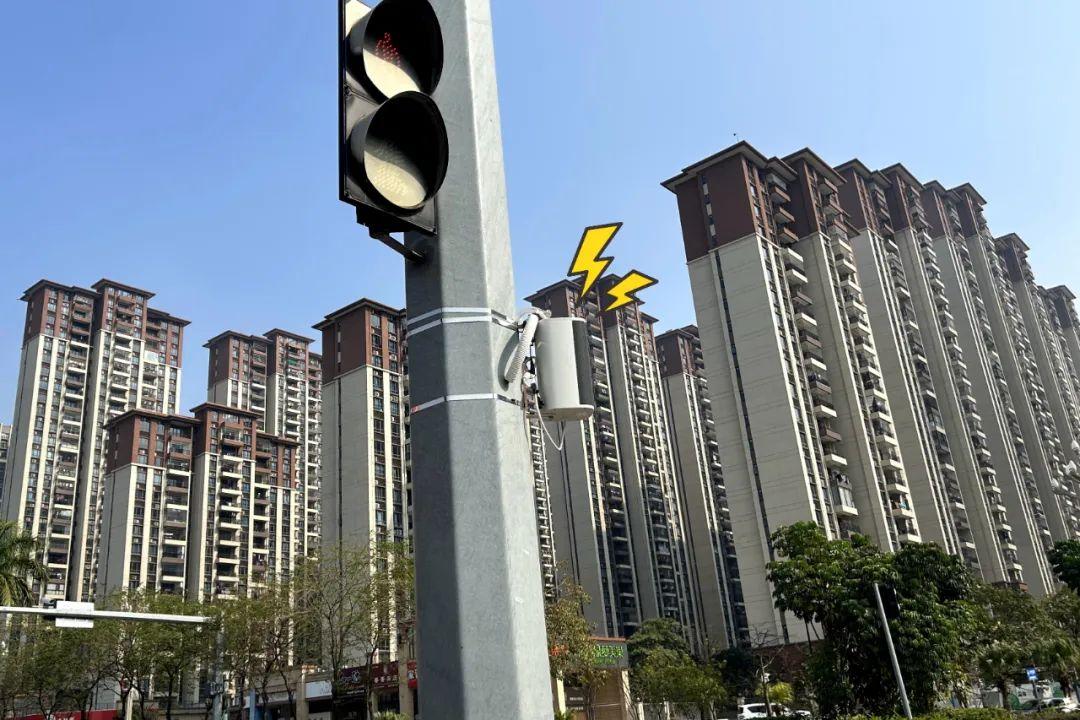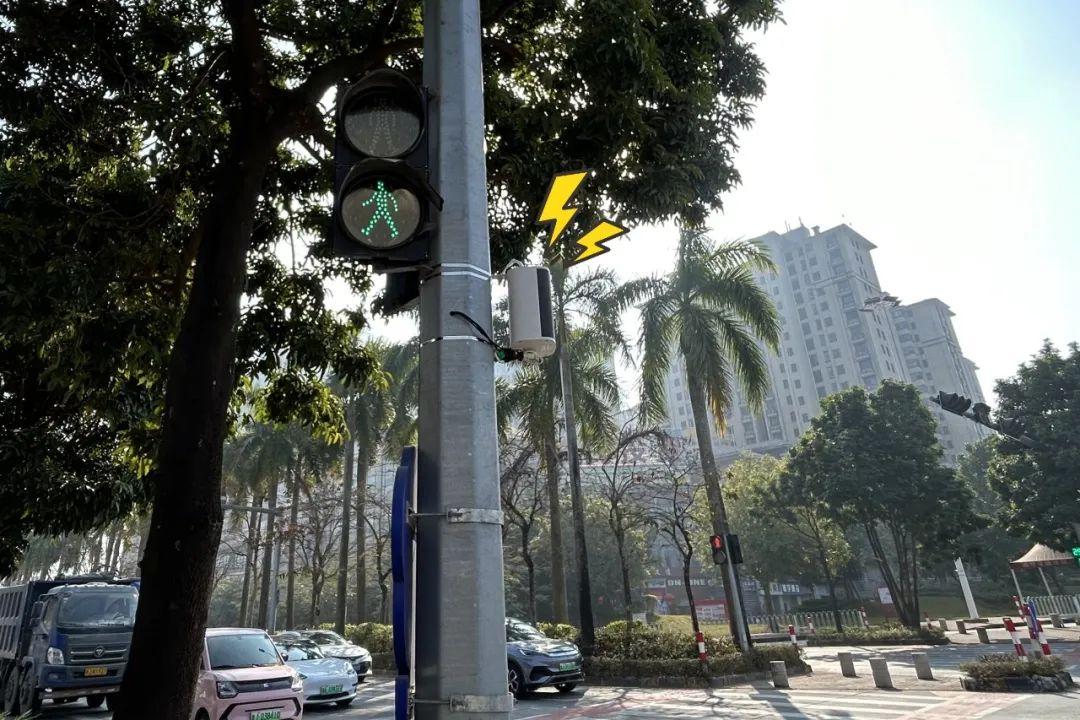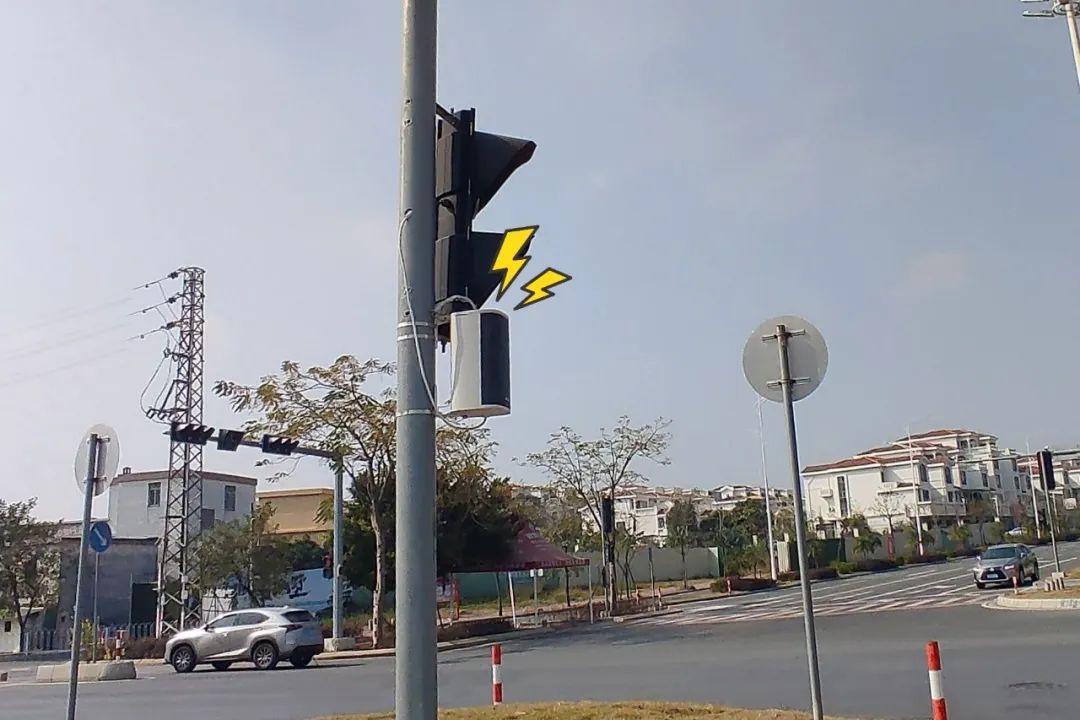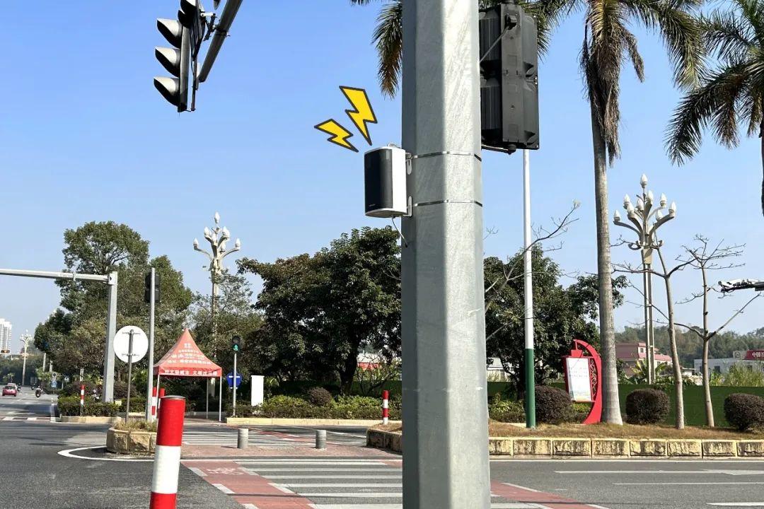 ▲ 燈柱上安裝的交通安全“大喇叭”在各個紅綠燈路口隨處可見。
