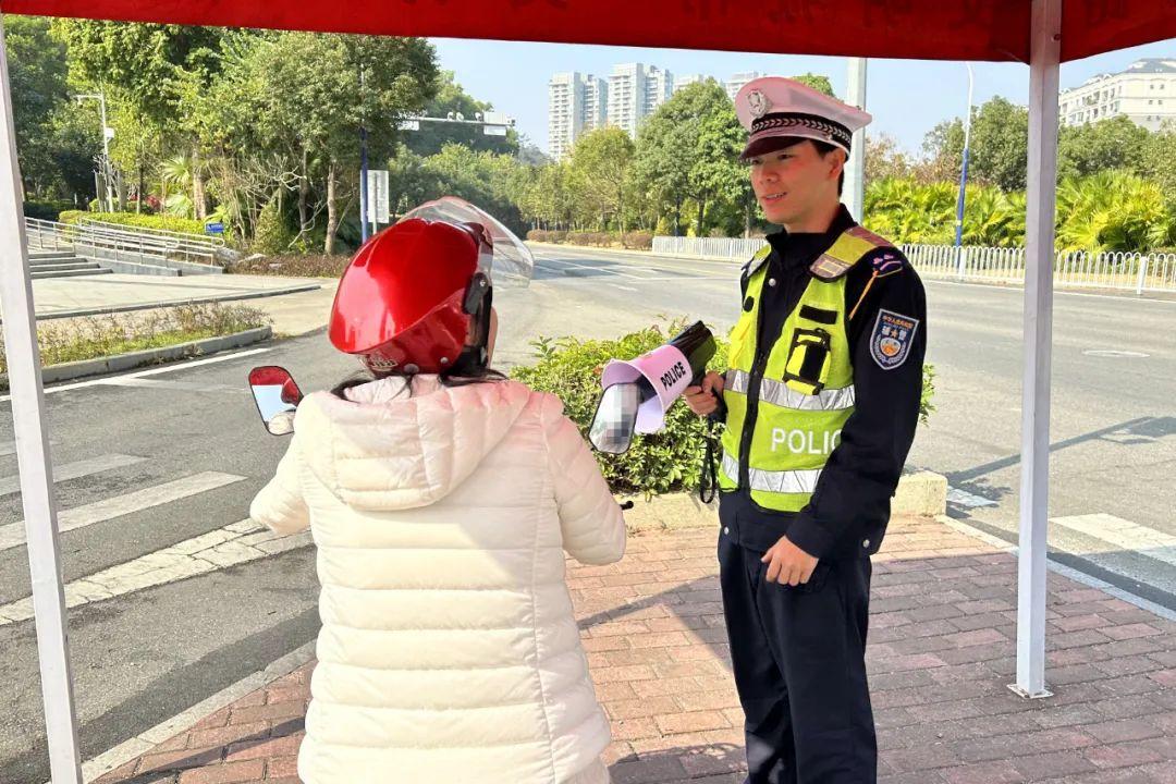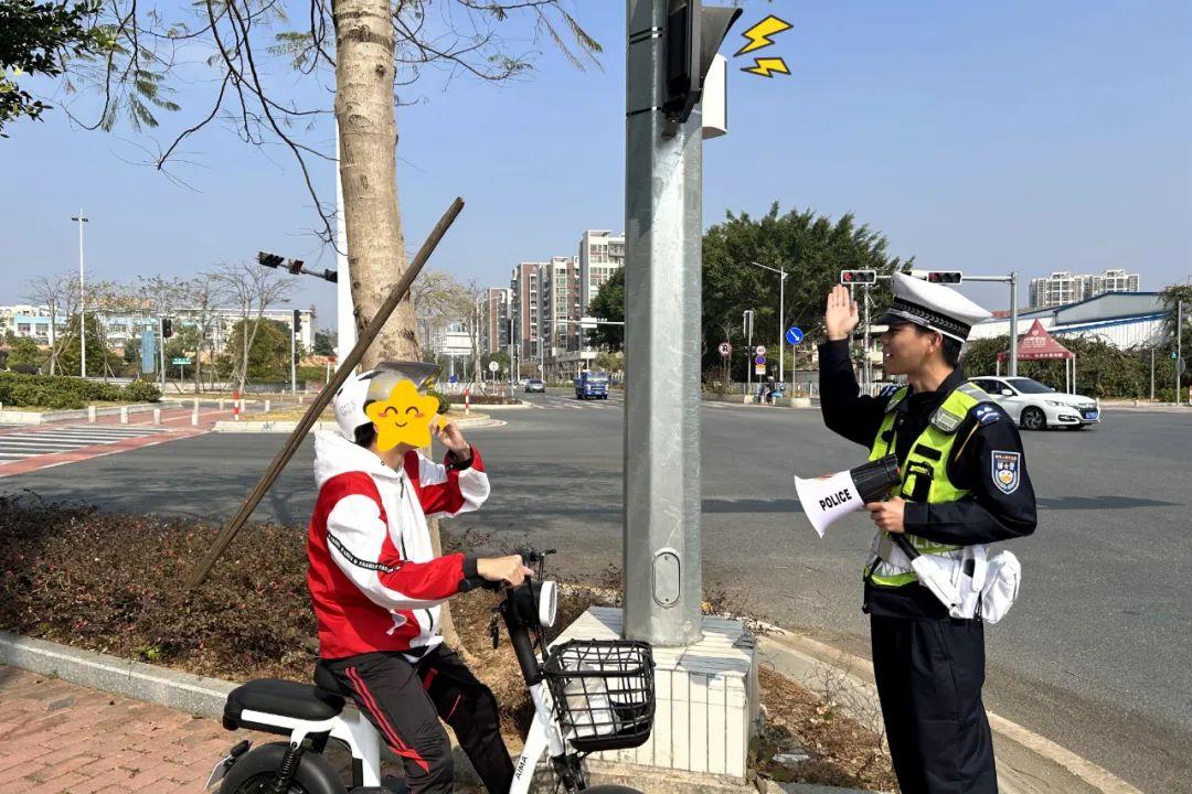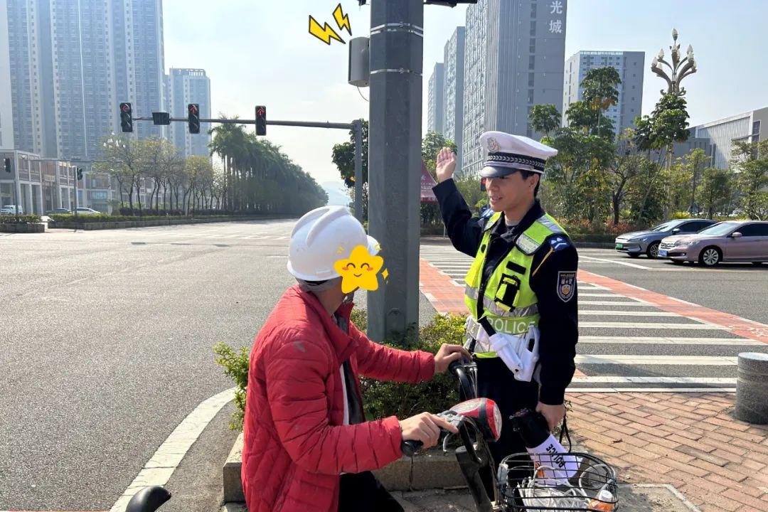 ▲ 民警及志愿者上崗過程中會提醒電動自行車駕駛人要遵守交通規則,引導摩托車靠右行駛、電動自行車走非機動車道,全面規范我市摩托車電動自行車交通秩序。