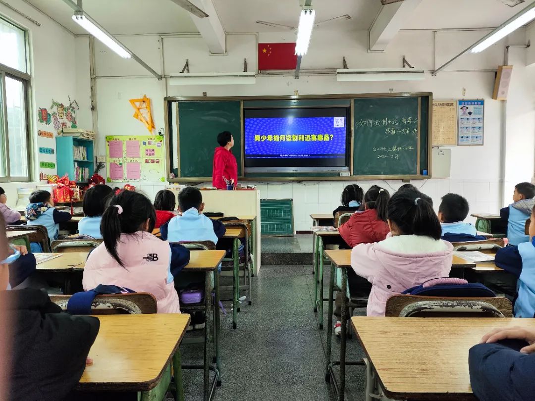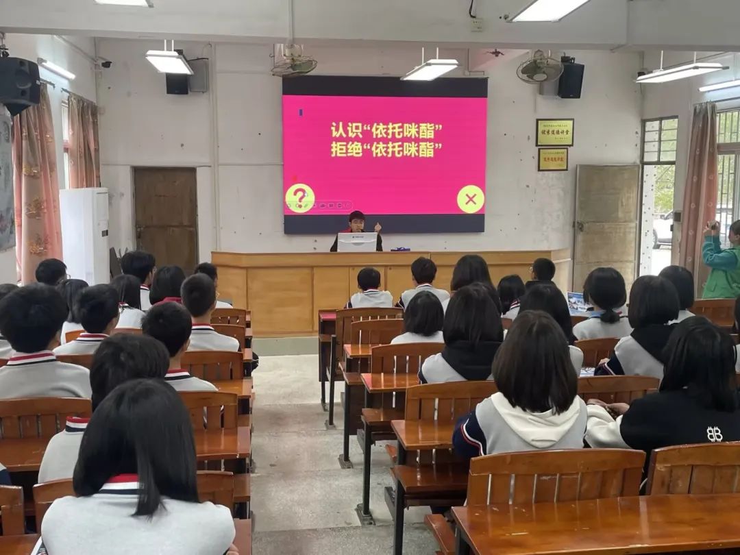 通過開展形式多樣、知識豐富的禁毒課堂,播放生動有趣的禁毒警示動漫片吸引同學們的目光,其中重點播放依托咪酯系列宣傳視頻,介紹了毒品替代物質依托咪酯的濫用、吸食依托咪酯“上頭電子煙”對身心和社會的危害等,并結合圖文、視頻,以案釋法,告誡青少年學生要切實提升防范新型毒品的意識和能力,堅決拒絕毒品。