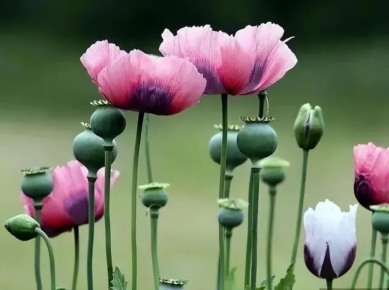 罌粟是一年生草本。葉片碧綠,花朵五彩繽紛,莖株亭亭玉立,蒴果高高在上,夏季開花,花大,單生枝頂。花瓣4片,紅色、紫色或白色。果實球形或橢圓形,種子小而多。