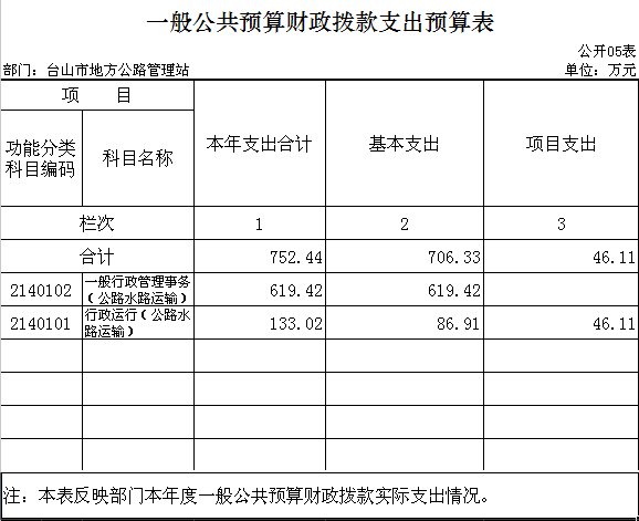 2016年臺山市地方公路管理站用財政撥款預算的出國(境)經費、車輛購置及運行費、公務接待費(簡稱“三公”經費)支出合計共35萬元。