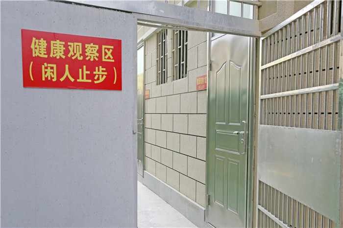學校設立了三個健康觀察區,位置相對獨立,采光和通風良好,專人負責,配備必需的安全防護用品,并配有單獨使用的衛生間和洗手設施,以備人員出現發熱等癥狀時立即進行暫時隔離觀察。同時,設立了醒目的“健康觀察區(閑人止步)”提醒標識,避免其他人員誤入。