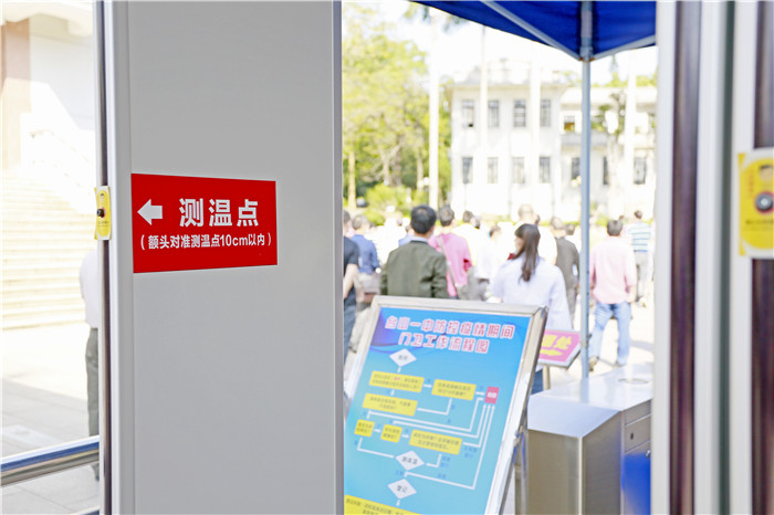 把好入?!伴T口關”,值班老師與安保人員配足配齊消毒用品和測溫儀,對入校人員逐一進行體溫檢測并做好登記,維護好校門口秩序,防止接送車輛阻塞交通要道。此外,在校門口明顯位置作出防控提醒,學校門口也安裝了兩扇紅外線測溫門,提升檢測效率。