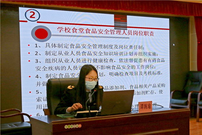 會上,市教育局和市場監(jiān)督管理局對全市校園食品安全專項檢查內(nèi)容進(jìn)行了解讀,并從《學(xué)校食品安全與營養(yǎng)健康管理規(guī)定》向與會人員開展系統(tǒng)培訓(xùn)。