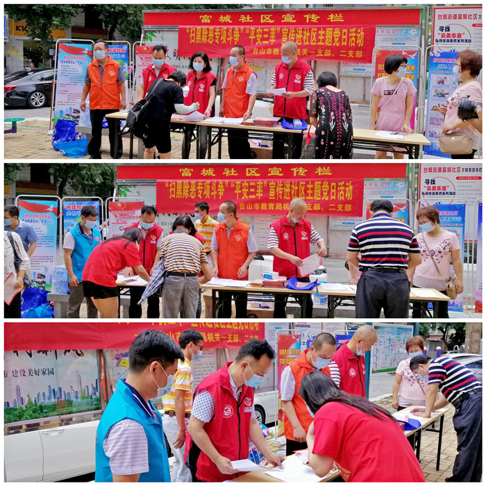 此次活動以“掃黑除惡專項斗爭”“平安三率”宣傳進社區(qū)為主題,機關(guān)黨員干部深入社區(qū)、街頭開展志愿服務(wù)活動,積極宣傳市掃黑除惡工作,耐心與群眾溝通,解答群眾心中疑惑,指引市民填寫“臺山市開展掃黑除惡專項斗爭調(diào)查問卷”和“2020年臺山市群眾安全感和政法工作滿意度及‘平安臺山’活動知曉率調(diào)查表”,發(fā)放掃黑除惡專項斗爭宣傳資料,宣傳黨的方針政策,傳遞正能量,提高群眾對黨的認識,樹黨員模范,展黨員風(fēng)采。
