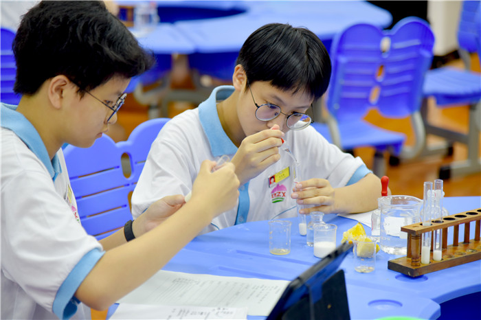 為了讓STEM課題更好地開展,新寧中學韋千茜老師上了一節(jié)精彩的科創(chuàng)和STEM研討課——《當牛奶遇到檸檬》。課上,學生興趣濃厚,積極發(fā)言探討。課題組成員觀摩課堂并進行深入討論交流。