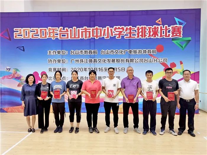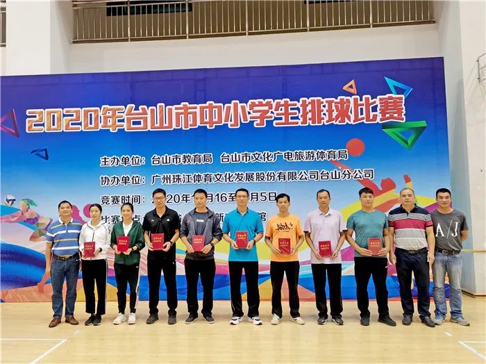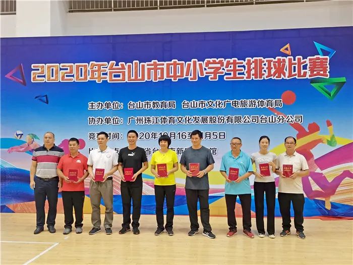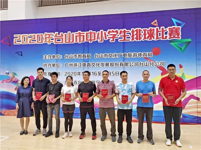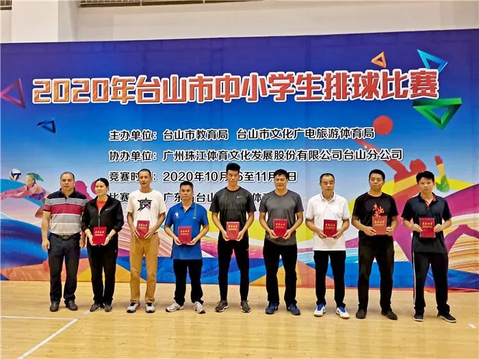 10月28日—11月5日,由市教育局、市文化廣電旅游體育局主辦,廣州珠江體育文化發展股份有限公司臺山分公司協辦的2020年臺山市中小學生(初中、小學組)排球比賽在新寧體育館舉行,本次共有初中組27支隊伍266名運動員、小學組31支隊伍353名運動員參加。
