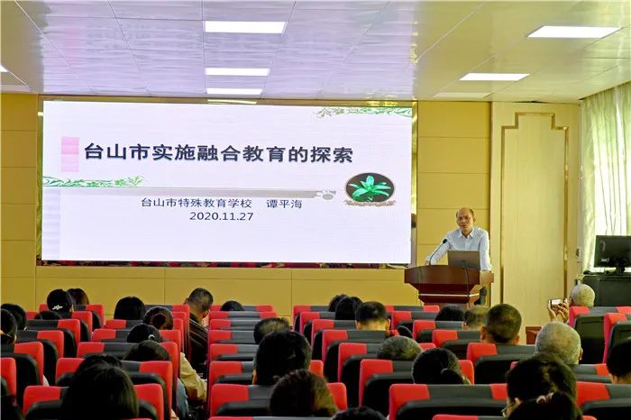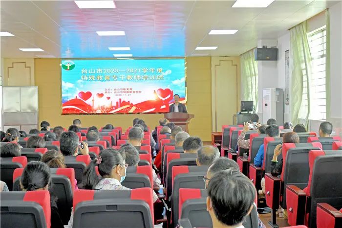 為進一步提高我市義務教育階段普通學校特殊教育專干教師、特殊教育資源室負責人的專業(yè)水平,11月27日,臺山市2020—2021學年度特殊教育專干教師培訓班在特殊教育學校舉行。市教育局副局長吳振文、基安股負責人顏校強,全市義務教育階段負責特殊教育同志及特殊教育學校全體教師等參加。