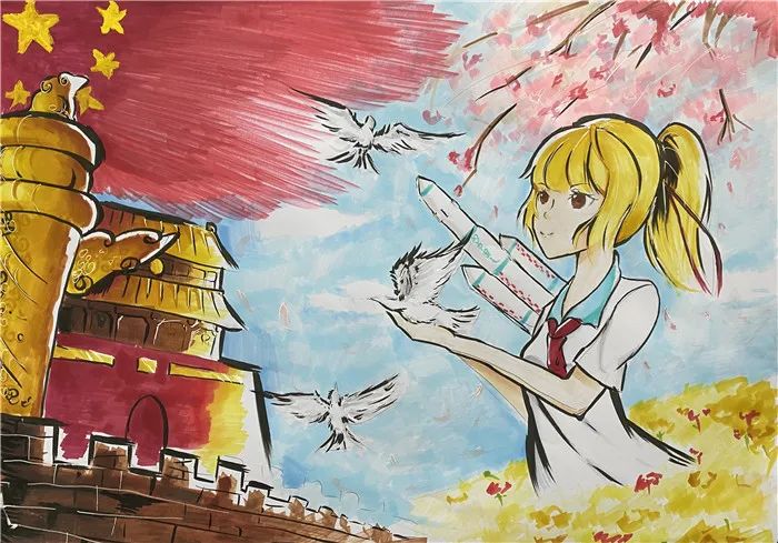 在兩個小時的比賽創作時間里,學生們凝心聚神,認真創作,通過巧妙的構思、熟練的筆法運用,學生們用書畫的形式繪畫出對祖國的熱愛,創作出一幅幅主題鮮明、風格多樣的書畫作品。經過評委認真評審,選出一等獎50名、二等獎100名、三等獎149名,評選出優秀指導教師獎(獲獎情況見附件)。