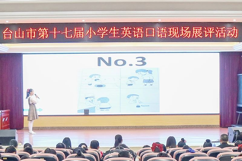 近日,臺山市第十七屆小學生英語口語現場展評活動在市教師發展中心學術報告廳舉行。市教師發展中心主任劉一柱、小學教研部主任雷炳權,全市小學八個教育集團參賽學生及教師等參加了活動。