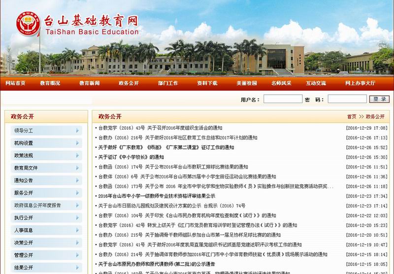 2016年,共在門戶網站公開政府信息406條,教育新聞信息482條;在臺山市政府信息公開目錄系統公開政府信息273條。