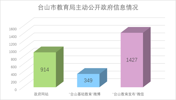 臺山市教育局主要通過市教育局門戶網(wǎng)站、官方微信公眾號、官方微博等載體主要公開政府信息。