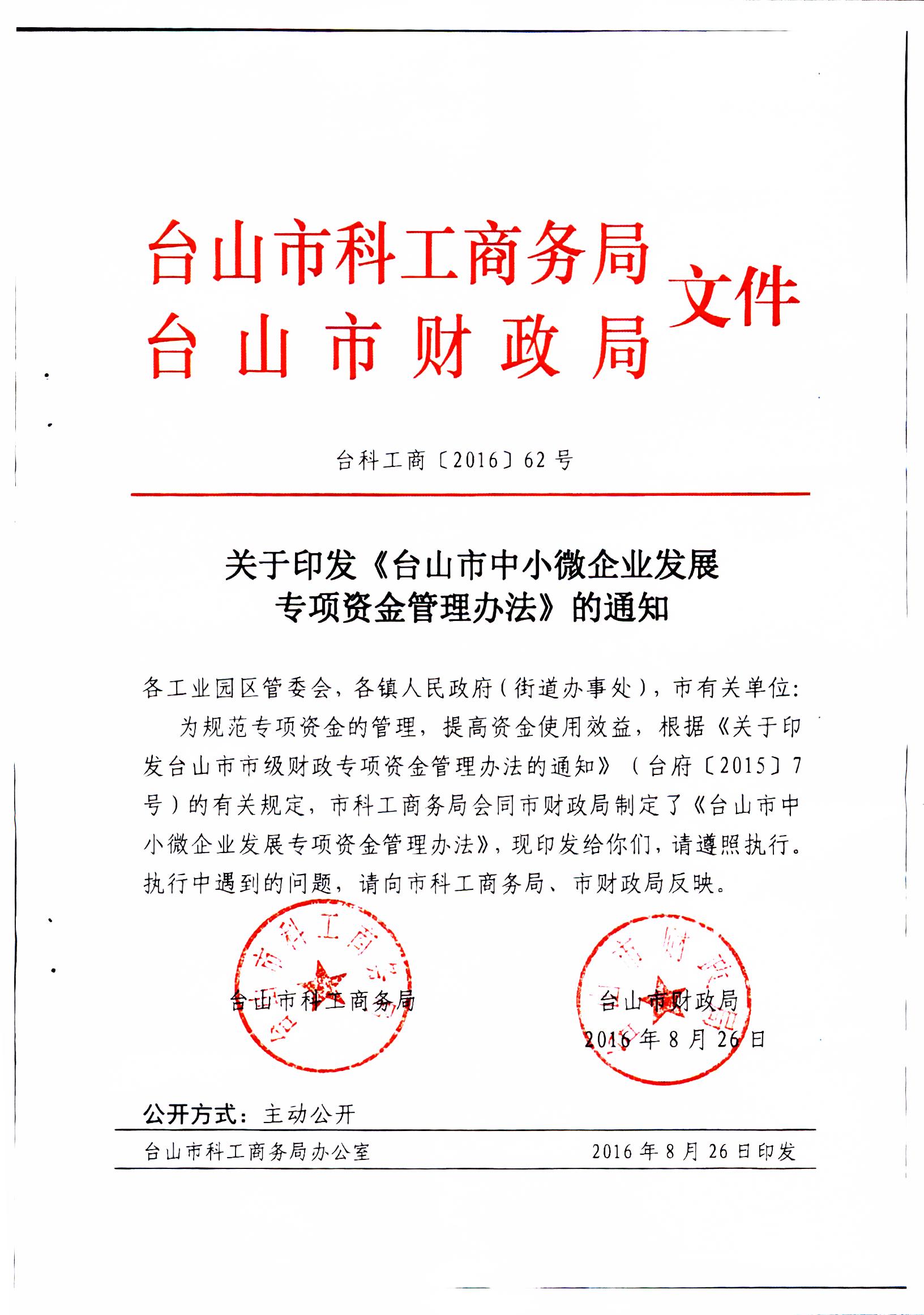 第一條 為促進我市中小微企業(yè)健康發(fā)展,規(guī)范臺山市中小微企業(yè)發(fā)展專項資金的管理,提高資金使用效率,根據(jù)《關于印發(fā)臺山市市級財政專項資金管理辦法的通知》(臺府〔2015〕7號)等規(guī)定,結合我市中小微企業(yè)發(fā)展工作實際,制定本辦法。