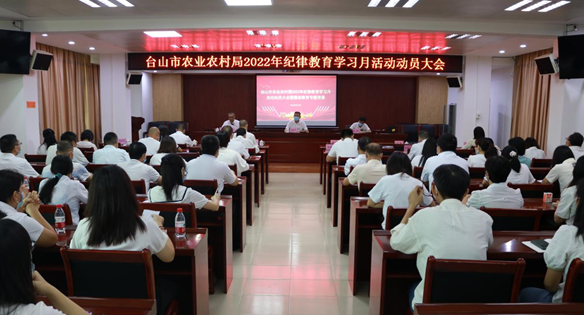 根據市委、市紀委工作部署,8月16日,市農業農村局召開2022年紀律教育學習月活動動員大會,對今年開展紀律教育學習月活動進行了動員部署。會議由局機關黨委書記吳東明同志主持,局黨組書記、局長黃永達同志作動員講話,市紀委監委駐市林業局紀檢監察組組長林雄同志出席并講授黨風廉政教育專題黨課。局領導班子、機關各股室及下屬單位全體在職干部、市港澳流動漁民工作辦公室及市廣海灣新城鄉農業經濟發展有限公司黨員同志等近90人參加會議,并集中觀看了警示教育片。