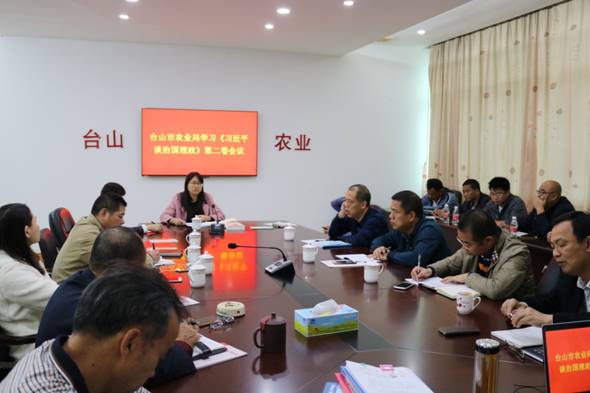 會議傳達了4月13日臺山市委學習《習近平談治國理政》第二卷研討會精神,并就農業系統學習貫徹相關工作進行研究部署。