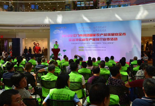 9月5日上午,江門市創建國家農產品質量安全市暨名特優新農產品宣傳推介活動在江門市萬達廣場隆重舉行,我市亓光勇副市長、市農業局鄺英華副局長出席了活動啟動儀式。