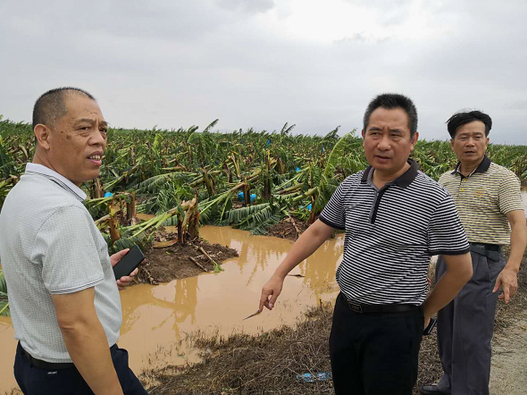 鄭少強局長一行人先到海宴鎮高新竹藝有限公司詳細了解該公司農業設施受損情況,隨后檢查了海宴鎮水稻、香蕉、甘蔗等作物受災情況。