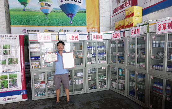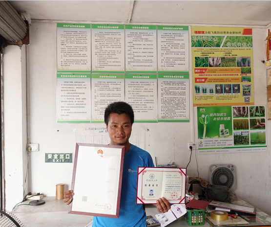 (北陡鎮兩位農藥經營者到市農業局領取首批農藥經營許可證)