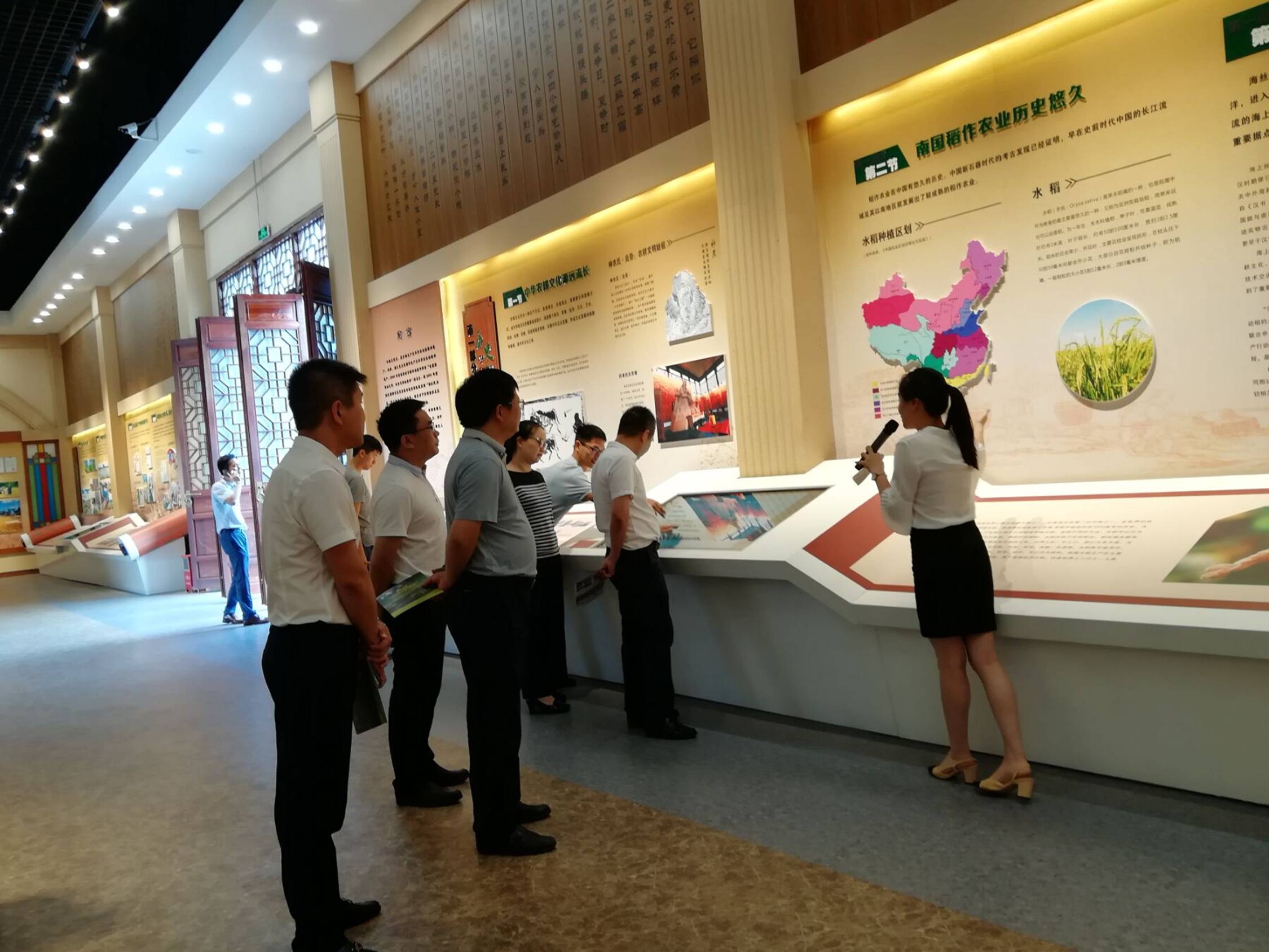督導組一行先到臺山中國農業公園,參觀了農耕文化(現代糧食)展示館,了解臺山嶺南農耕文化的發展、臺山大米特色,并實地查看臺山都斛廣東第一田實景。