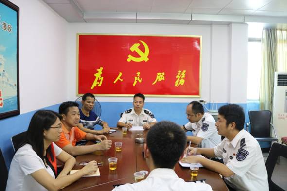 調(diào)研組在漁政大隊(duì)川島中隊(duì)座談