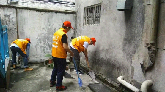 市動監所志愿者對花盆、門樓引水道、排水管道等容易滋生蚊孽的地方仔細進行清理,不輕易放過每一處可能滋生蚊孽的地方。