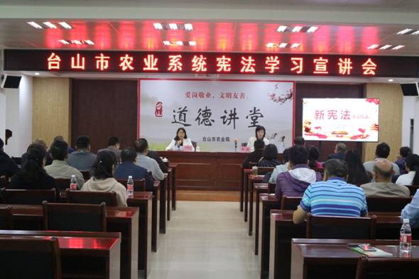 今年12月4日是我國第五個國家憲法日,也是憲法新修訂后第一個國家憲法日,具有特殊重要的意義。為深入學(xué)習(xí)宣傳貫徹好憲法修正案,幫助農(nóng)業(yè)系統(tǒng)黨員干部學(xué)習(xí)好、領(lǐng)會好憲法修正案的意義及內(nèi)容, 11月28日下午,我局在十樓會議中心舉辦農(nóng)業(yè)系統(tǒng)憲法學(xué)習(xí)宣講會。會議由局黨組成員、紀(jì)檢組長蔡鳳嬌同志主持,局全體班子成員,各股室、直屬單位全體干部職工參加會議。
