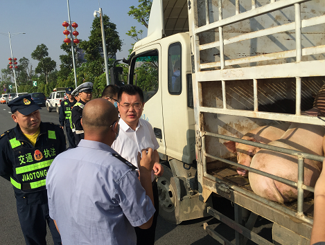 市農業局迅速制定了《臺山市非洲豬瘟聯合檢查工作方案》,于12月2日上午由亓光勇副市長、周堅校局長帶隊,放棄周未休息時間,組織農業、公安、交通運輸、食藥監等部門在臺城高速出口設卡,檢查過往運豬車輛備案情況、檢疫合格證明情況、運輸和消毒臺賬落實情況等等,并對車輛進行消毒。本次聯合行動共出動人員18人次,檢查運豬車輛2輛,檢查生豬72頭。經檢查,所持證照符合要求,臨床檢查的生豬健康。