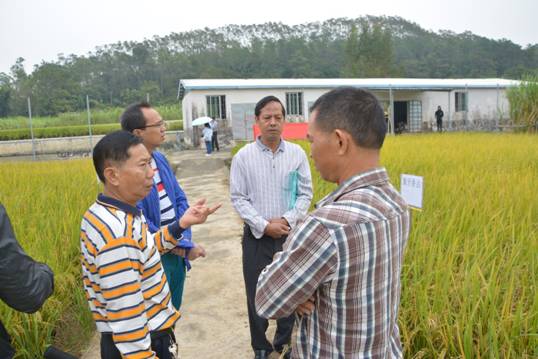 (各單位參會人員參觀赤溪鎮及都斛鎮水稻示范點各示范品種)