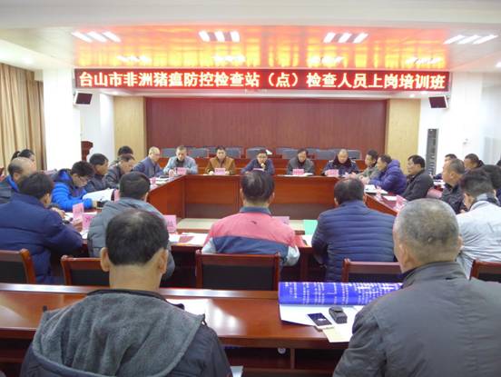 隨后,市公安局、交通運(yùn)輸局、食品藥品監(jiān)督管理局和農(nóng)業(yè)局按檢查職責(zé)分工先后向參訓(xùn)人員詳細(xì)講解了檢查程序和要求。此外,農(nóng)業(yè)局還印制了《臺(tái)山市非洲豬瘟防控臨時(shí)檢查站(點(diǎn))日志》、《臺(tái)山市非洲豬瘟防控臨時(shí)檢查站(點(diǎn))工作流程和職責(zé)分工》掛圖和工作手冊(cè)派發(fā)給各鎮(zhèn)(街)。通過(guò)此次培訓(xùn),進(jìn)一步明確了各單位各部門的職責(zé)分工和工作流程,提高了參訓(xùn)人員的業(yè)務(wù)水平。