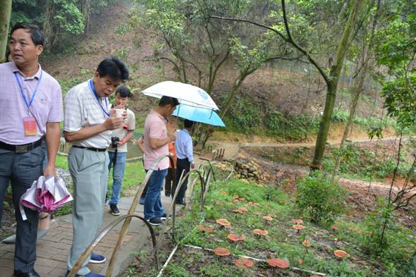 隨后,學員們來到英德大站靈芝公園。冒著細雨,仍然熱情不減,現(xiàn)場參觀學習靈芝種植技術。