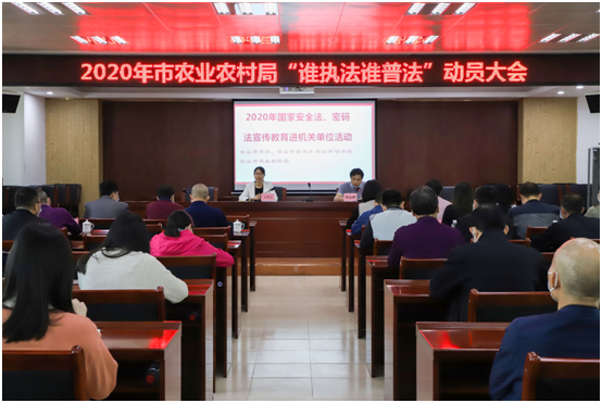今年4月15日是我國第五個全民國家安全教育日,為普及宣傳國家安全的法律法規,進一步把農業農村普法工作做實、做到最基層,4月15日上午,我局聯合市普法辦、市委辦、市司法局舉辦國家安全法、密碼法宣傳教育活動暨“誰執法誰普法”動員大會,局機關及下屬單位60余名干部職工參與其中。