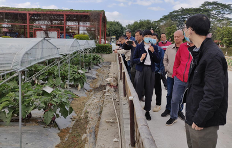 在廣東海納農業有限公司,學員們了解該公司將種植業和養殖業有機結合,同時兼顧生態環境和經濟效益的稻田立體種養模式,了解生態循環農業模式發展理念。隨后到博羅縣航天農業科技生態園參觀,觀摩該基地的智能育苗溫室棚,并了解到航天育種選育的太空茄子,太空芥菜等新品種。