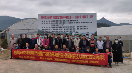 (學員們到惠州市四季鮮綠色食品有限公司的種植基地前合影)