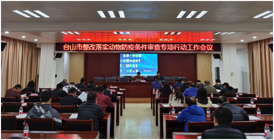 1月20日上午,臺山市農業農村局召開整改落實動物防疫條件審查專項行動工作會議,會議由市農業農村局副局長陳國權同志主持,各鎮(街)農業分管領導、畜牧獸醫負責同志及畜牧獸醫站工作人員近五十人參加。