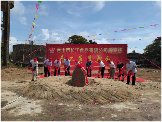 5月29日上午,臺山市長江食品有限公司廣海屠宰場開工奠基儀式在廣海鎮烽火角舉行。江門市農業農村局、臺山市農業農村局、臺山市廣海鎮政府、臺山市長江食品有限公司以及相關單位負責人和企業代表出席開工奠基儀式,并為項目奠基。
