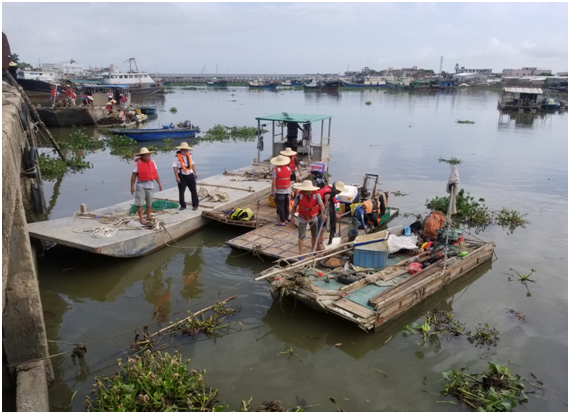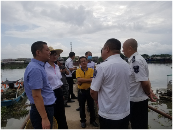 △省海洋綜合執法總隊直屬二支隊支隊長施峰、江門支隊副支隊長林為民、臺山市農業農村局局長黃永達、副局長黃志本、廣海鎮鎮長梁志嬌,臺山市海洋綜合執法大隊大隊長黃永建等領導親臨現場督導清理工作