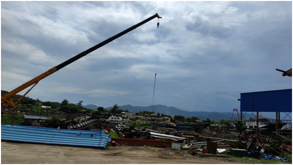 △廣海烽火角華長船廠,將扣押的“三無”船舶吊上岸待進一步調查處理
