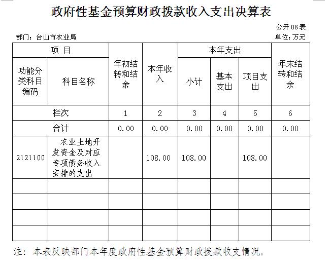 八、政府性基金預算財政撥款收入支出決算表