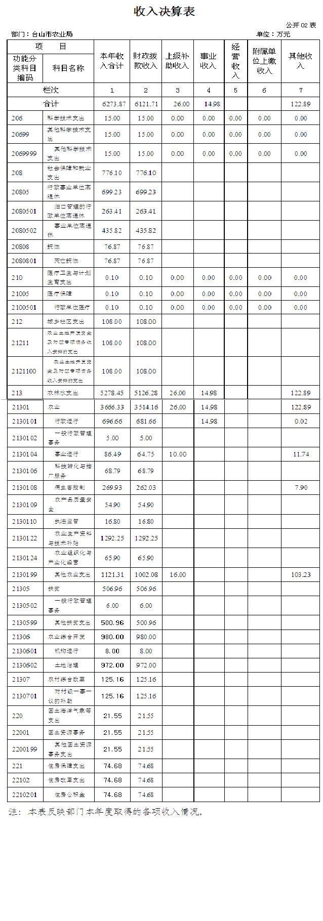 臺山市農業局2015年度總收入6273.87萬元,其中本年收入6273.87萬元。具體情況如下:
