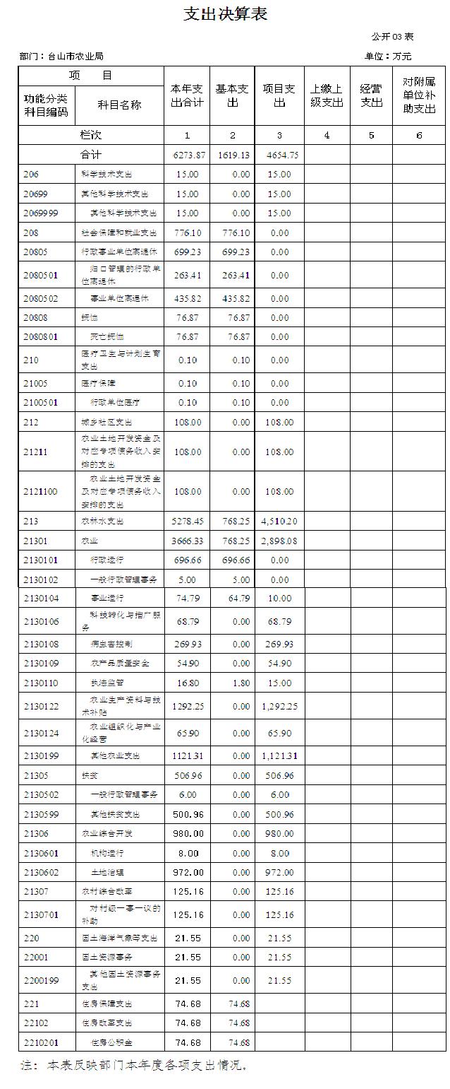 臺山市農業局2015年度總支出6273.87萬元,其中本年支出6273.87萬元。具體情況如下: