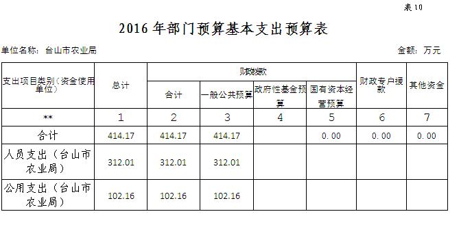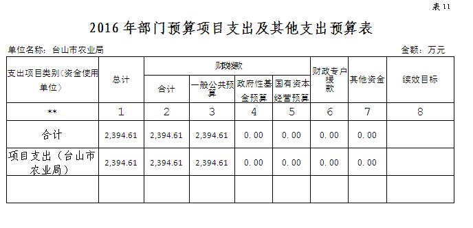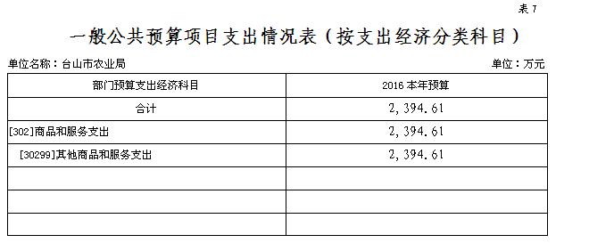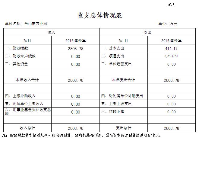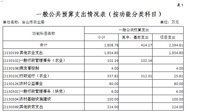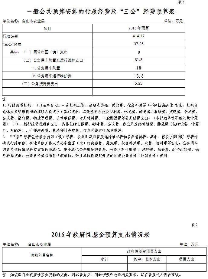 (一)本部門預算為獨立預算,部門預算為臺山市農業局本級預算。