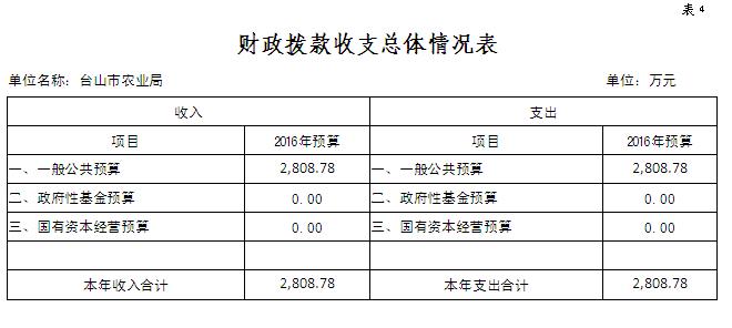 四、財政撥款收支總體情況表