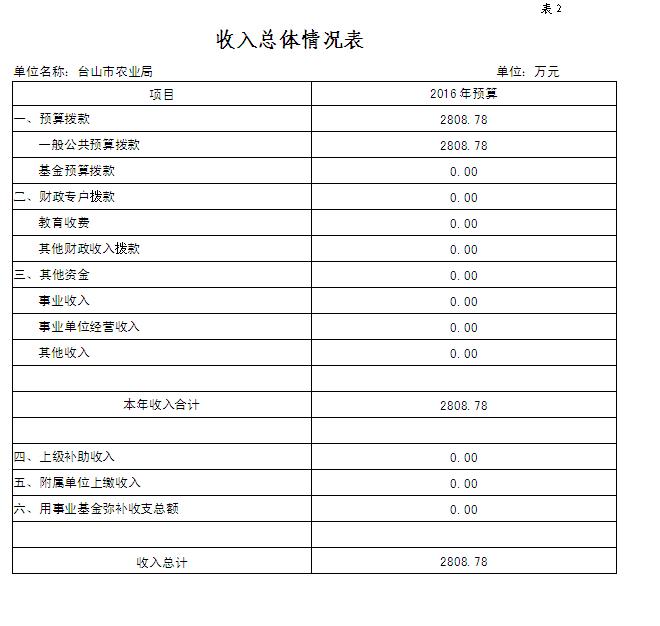 2016年本部門收入預算2808.78萬元,比上年增加1709.6萬元,增長155.53%,主要原因是增加土地承包經營權確權登記頒證工作項目。