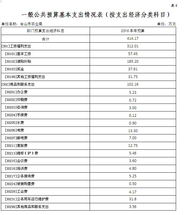 六、一般公共預算基本支出情況表(按支出經濟分類科目)