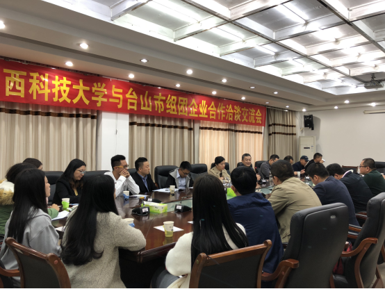 圖為廣西科技大學與臺山市組團企業合作洽談交流會場景。